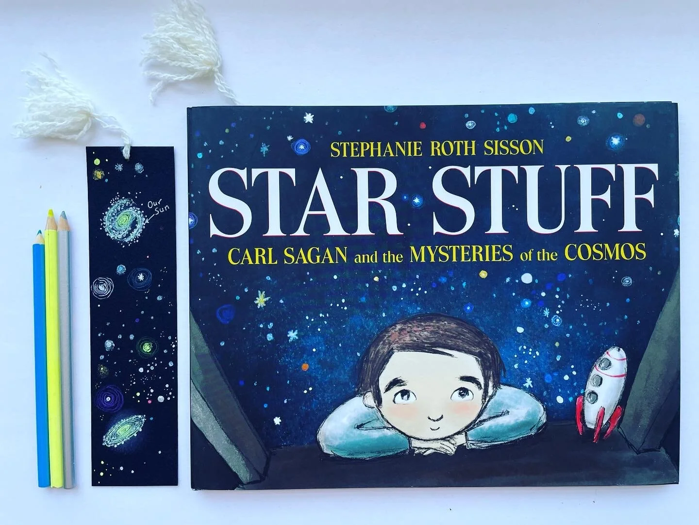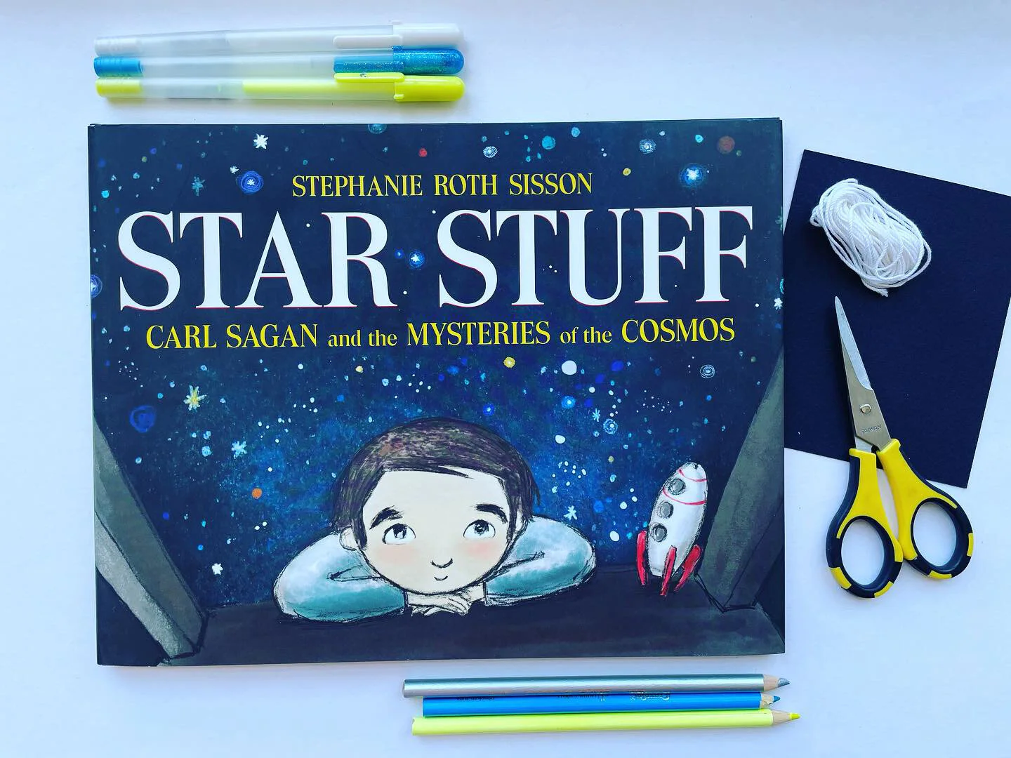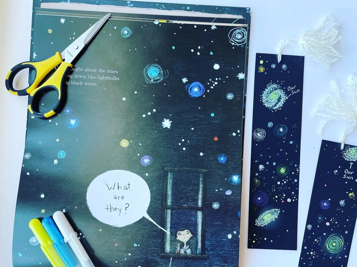Inspired by the star scenes in Star Stuff, we created bookmarks to remind us of our place in the universe. We always feel awe when looking up at the millions of stars in the night sky, and thinking about how much we’ve learned and how much is yet to be discovered.